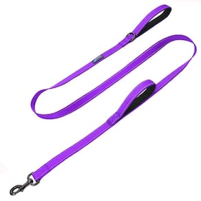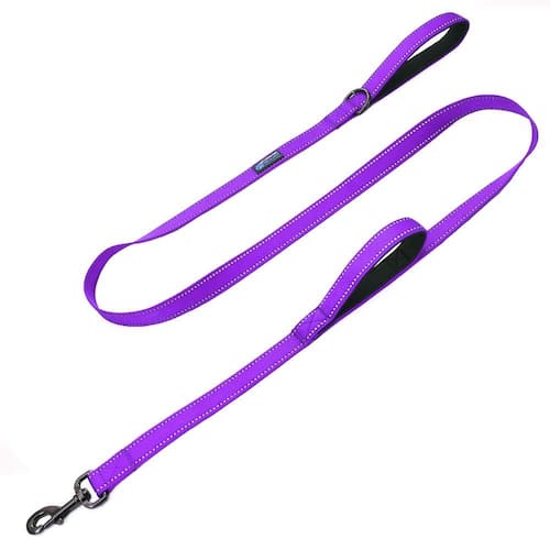 - CARACTERÍSTICAS DE ALTA FINAL: Duas alças acolchoadas de neoprene macio. Uma localizada a 45,7 cm do fecho. Ótimo para quando você precisa manter seu cão mais perto de você no trânsito, aulas de obediência ou perto de outras pessoas. A segunda alça acolchoada na extremidade para conforto contra o pulso. Anel em D perto da alça para prender sacos de cocô ou outros acessórios. Fecho de metal resistente de qualidade. Costura reflexiva para melhorar sua visibilidade à noite.