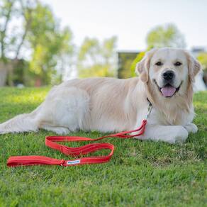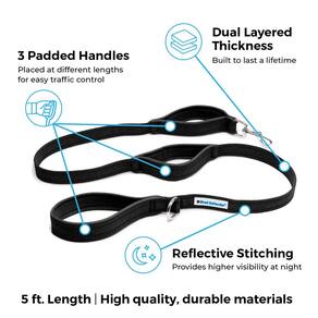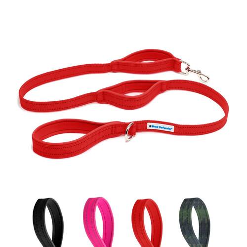 Shed Defender de 5 pés Coleira padrão para cães — três alças de trânsito acolchoadas, projetadas nos EUA, dupla espessura, pesada, costura refletiva, cães grandes e raças pequenas, guia de treinamento (vermelha)