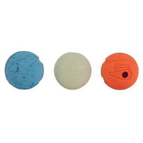 Brinquedos para cães Chuckit Fetch Medley Dog Ball, pacote médio (2,5 polegadas) com 3, para raças médias, inclui bolas Whistler, Max Glow e Rebounce