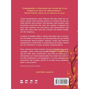 Baseada em Muito barulho por nada, esta comédia romântica encantadora e sexy promete conquistar todos os leitores que procuram uma história deliciosa envolvendo namoro falso, opostos que se atraem e uma boa dose de amor. “A comédia romântica perfeita! Uma leitura obrigatória” — Ali Hazelwood, autora de A hipótese do amor Quando Jamie Westenberg e Bea Wilmot se conhecem, fica claro que eles não poderiam ser mais diferentes. Após uma noite desastrosa, eles estão certos de que nunca mais se verão, mas, por algum motivo, seus amigos parecem pensar que os dois seriam o casal perfeito e bolam um plano para enganá-los e fazer com que tenham um encontro. Assim, Jamie e Bea passam a conversar por mensagens sem saber que estão falando um com o outro, mas descobrem toda a farsa quando decidem se conhecer pessoalmente. Furiosos, eles resolvem se vingar. O plano é começar um namoro de mentira insuportavelmente apaixonado, convencer todos de que são almas gêmeas e depois terminar da forma mais dramática possível, fazendo com que os amigos pensem duas vezes antes de bancar o cupido de novo. Mas, enquanto colocam o plano em ação, a lembrança das conversas virtuais não sai da mente deles, e os dois se perguntam se realmente podia haver algo entre eles. Fingir estar apaixonado, afinal, pode se parecer muito com estar apaixonado de verdade, e aos poucos Jamie e Bea começam a questionar se na realidade não estão enganando a si mesmos… CONTEÚDO ADULTO