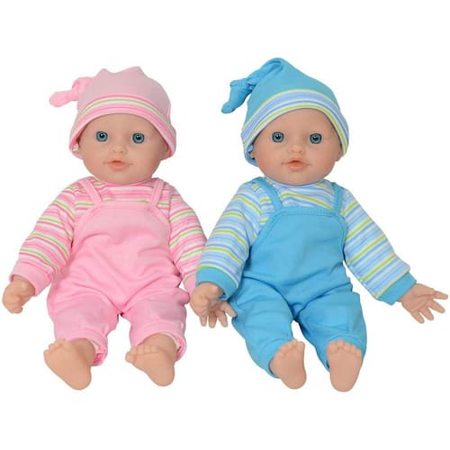 Cor:Caucasiano DUPLO A Diversão? Afagam?? Abraçando essas bonecas??? As crianças não resistem a isso! Crianças, meninas e meninos vão adorar cuidar dessas bonecas gêmeas caucasianas. Com apenas 12 polegadas de comprimento, essas gracinhos são perfeitas para crianças e crianças abraçarem, nutrirem, amarem e cuidarem. Este conjunto twin doll é uma maneira perfeita de apresentar crianças a um recém-nascido, prepará-las para um novo bebê, terapia de brincar, e qualquer outro tipo de brincadeira. As roupas e chapéus de bebês são todos removíveis e laváveis para que quando seu filho decide que ela deve ter sua boneca perto dela no jantar ou brinca muito grosseiramente e as roupas ficam sujas.... NÃO SE PREOCUPE, eles vão ficar novos depois de lavá-lo! Agora seu filho pode se divertir sem se preocupar em danificar suas roupas de boneca ou acessórios. CARACTERÍSTICAS:- Características faciais detalhadas artesanais com dedos e dedos realistas- Toque suave, corpo suave e leve, corpo aconchegante- Adorável Rosa e Azul combinando roupas com um chapéu combinando- Tecido é 100% lavável e corpo de bonecas é fácil de detectar lavagem- Grande diversão para crianças de 2 anos e mais velhosMAKE-LO O PRESENTE PERFEITO PARA O NATAL OU O ANO TODONÃO obter este bebê gêmeo de alta qualidade conjunto boneca como um presente. Ela vai se lembrar de toda a sua vida! bonecas para meninas de 2 anos de idade e meninas de 3 anos de idade e até