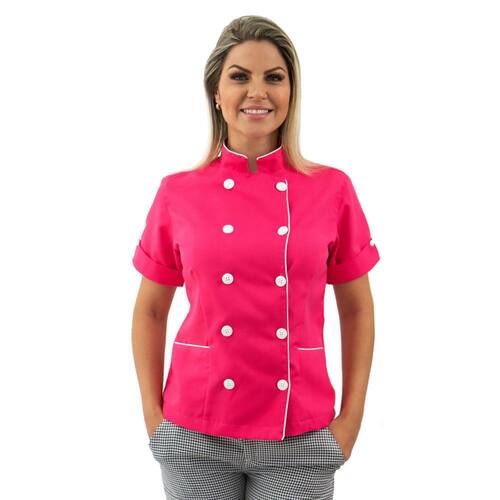 Dolmã Chef de Cozinha feminina ACINTURADA manga curta é produzido em tecido Oxford Premium.