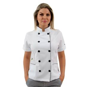 A Dolmã Chef de Cozinha feminina ACINTURADA manga curta é produzido em tecido Oxford Premium.