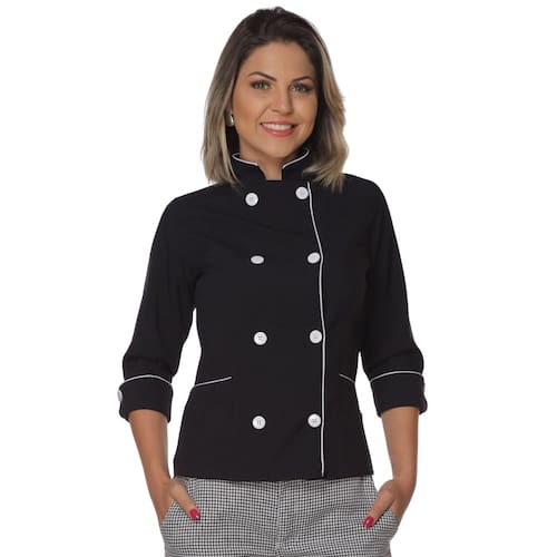 Dolmã chef de cozinha feminina manga 3/4 Algodão - GG - Preto