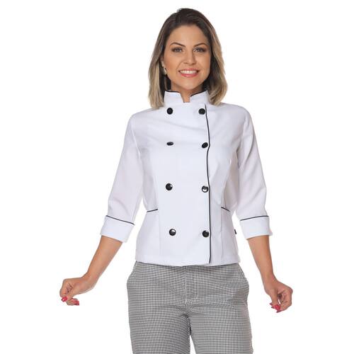Dolmã chef de cozinha feminina manga 3/4 Algodão - GG - Branco