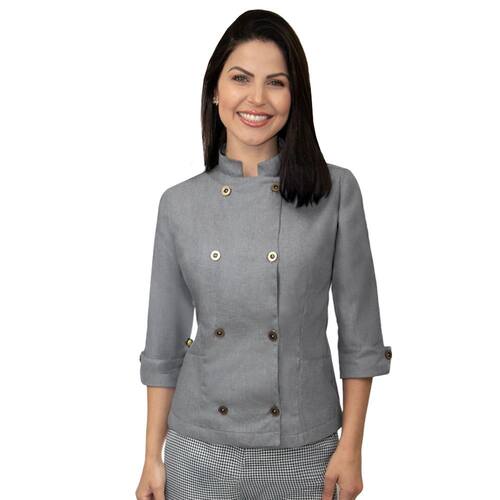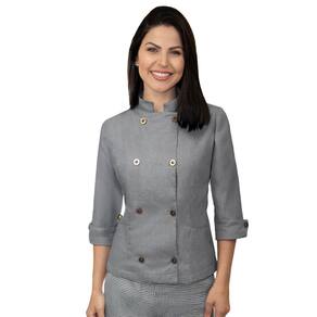 A Dólmã Chef de Cozinha feminina ACINTURADA, manga 3/4 é produzido em tecido Semprigual da Santista.