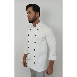 Adquira agora esta Dolma Masculina Chef de Cozinha de Manga 3/4 em tecido de brim na cor branca e eleve o padrão do uniforme profissional. Combinando design contemporâneo com funcionalidade essencial, esta peça é uma escolha elegante para profissionais exigentes.