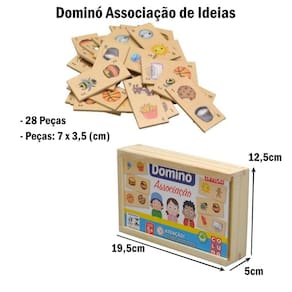 Dominó Infantil Associção De Ideias Educativo e Pedagógico. Com 28 peças em madeira.