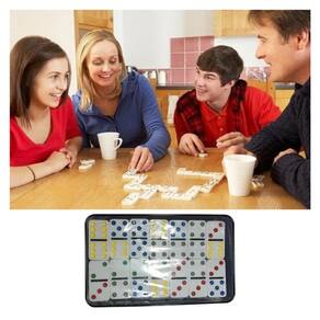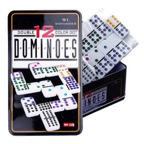 Jogo de dominó com pontos de 12 cores na caixa de coleção do maior grau de dificuldade para dominó, em vez de 6 pontos, esta versão tem até 12 pontos, então em vez de 28 fichas, esta versão tem 91 fichas. Para facilitar o jogo, pintamos cada número com uma cor diferente. Como jogar: Todas as peças são colocadas frente a frente na mesa e mexidas. Cada jogador pega 9 peças e coloca todas as fichas levantadas da frente para que ninguém possa ver sua jogada. As peças restantes são colocadas no centro da mesa para saber de onde “roubar” durante o jogo. O jogador com a “ficha dupla” com a maior pontuação é aquele que começa a jogar. Em seguida, o jogo continua para a esquerda. O segundo jogador agora, iniciando o jogo, tentará fazer com que uma de suas fichas coincida com a da mesa. Por exemplo: se houver um “duplo 4” na mesa, o jogador tentará colocar um que ele tem com um 4 em um dos lados. Apenas uma ficha pode ser jogada por turno. As peças serão colocadas ao longo e somente do outro lado quando for uma “ficha dupla”. É assim que o jogo continua combinando fichas com o mesmo número de pontos, lembrando que sempre há duas opções (as 2 terminam). Se um jogador, em um determinado momento, não encontrar entre suas peças nenhuma que lhe sirva para jogar, ele deve roubar as que estão no centro da mesa e assim por diante até encontrar a que precisa. Se você continuar roubando e nenhum sair, “passe” e deixe sua vez para o próximo jogador. O jogo continua até que um dos jogadores fique sem seus arquivos a partir dos 6 anos de idade. NÃO INCLUI TRAINCITE OU OUTROS ELEMENTOS, EM FICHAS