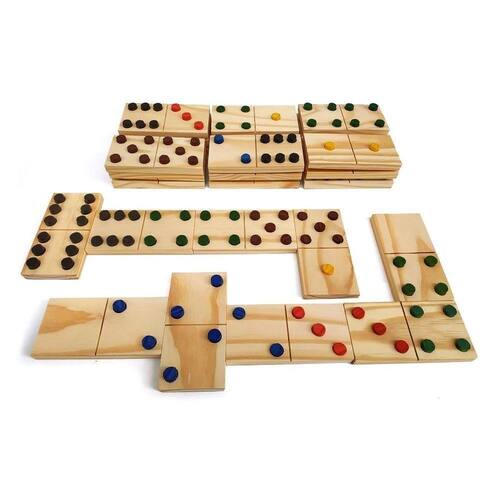 Domino gigante em madeiraContém:28 peças em madeira com tamanho de 16 x 8 x 2 cm com pinos em madeira coloridos em em relevo.ObjetivoDesenvolvido para atender pessoas com visão subnormal o dominó gigante possui peças grandes com cores contrastantes e relevo para facilitar a visualização das mesmas. O jogo ajuda a desenvolver a atenção, memória, noções matemáticas, concentração, raciocínio, memória, percepção tátil, socialização, e inclusão de pessoas com dificuldades visuais.Embalagem:Caixa em papelão tamnho 27x27x16 cmPeso: 3kgIdade: acima de 5 anosInmetro ce-bri/003-n 3107-07 nm 300/2002