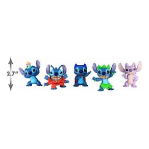 Leve para casa as aventuras de Lilo e Stitch da Disney com este conjunto colecionável com 5 mini figuras de 7cm. Elas são altamente detalhadas e se parecem examente como no filme. O conjunto inclui 4 figuras do Stitch, em poses mega divertidas, e 1 figura da Angel