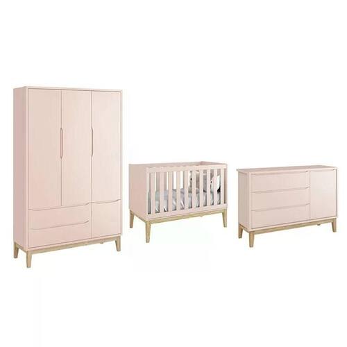 Dormitório Classic 3 Portas Rosa Com Pés Madeira Natural - Reller Móveis Rosa