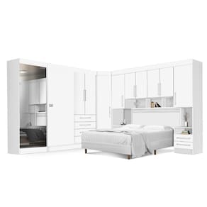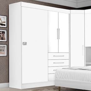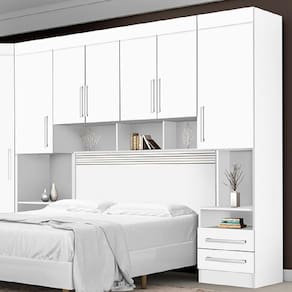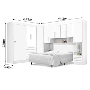Dormitório Completo Georgia J&A Branco Para Cama Box 1,38M Casal MARCA: J&A Móveis | MODELO: Dormitório de canto Completo Georgia para cama box de 1,38m | COR: Branco | MEDIDAS: Medidas Lado esquerdo: Altura: 218 cm Largura: 229 cm Profundidade: 45 cm Medidas Lado Direito: Altura: 218 cm Largura: 293 cm Profundidade: 45 cm | OBS: Camabox e objetos decorativos não estão inclusos no preço anunciado. Cor: Branco/Rosa