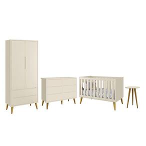 Dormitório Completo Infantil Theo 2 Portas, Cômoda 6 Gavetas, Berço e Mesa de Canto com Pés Amadeirado - Reller Móveis - Bege