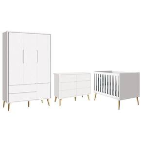 Dormitório Completo Infantil Theo 3 Portas, Cômoda 6 Gavetas e Berço com Pés Madeira Natural - Reller Móveis