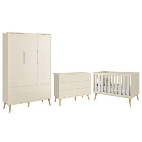 Dormitório Completo Infantil Theo 3 Portas, Cômoda 6 Gavetas e Berço com Pés Madeira Natural - Reller Móveis