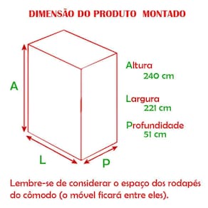 Dormitório De Casal Sem Cama 1220s San Remo * Cama, Colchão e itens de decoração não estão inclusos. Imagens meramente ilustrativas. Ideal para casais que procuram de um dormitório com bom espaço interno e compacto para os ambientes das grandes metrópoles. - 01 Guarda-roupas de 1 porta e 3 gavetas com mesa de cabeceira embutida modelo 1416 esquerdo; - 01 Guarda-roupas de 1 porta e 3 gavetas com mesa de cabeceira embutida modelo 1416 direito; - 01 Maleiro de casal 4 portas modelo 1226; - Corrediças, dobradiças a cabideiros de metal; - Chapa de 15mm de espessura; - Puxadores 256mm; DIMENSÕES DO PRODUTO MONTADO - ALTURA 240 CM; - LARGURA 221,4 CM; - PROFUNDIDADE 51CM NOS ARMÁRIOS (LEMBRE-SE DE CONSIDERAR O ESPAÇO NECESSÁRIO PARA SUA CAMA). Vão livre de 146cm de comprimento por 110cm de altura abaixo do maleiro. Lembre-se sempre de verificar se a cabeceira da sua cama cabe neste espaço. Embora a cama não acompanhe, informamos que o painel, o frontal e prateleira localizados abaixo do maleiro são inclusos (pois fazem parte do maleiro e não da cama). Atenção: Não nos responsabilizamos, no ato da entrega, por desmontagens, subir escadas/elevadores ou transporte por guincho para apartamentos. Eventuais despesas são de responsabilidade do cliente. Confira as dimensões deste produto e certifique-se de que o mesmo passará normalmente por supostos elevadores, portas, escadas e/ou corredores de sua moradia.