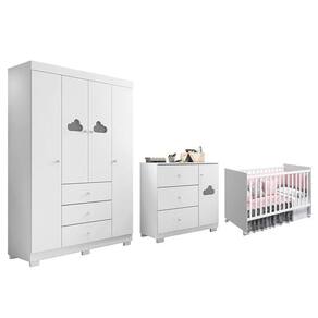 Dimensões: Tamanho do Guarda-Roupa (L x A x P): 132 x 193 x 44 cm Tamanho da Cômoda (L x A x P): 91 x 91 x 42 cm Tamanho do Berço (L x A x P): 133 x 91 x 76 cm