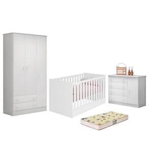 Dormitório Infantil Doce Sonho 3 Portas, Cômoda 1 Porta, Berço Mini Cama Branco E Colchão - Qmovi Branco Dormitório Infantil Doce Sonho 3 Portas, Cômoda 1 Porta, Berço Mini Cama e Colchão - Qmovi Com o Dormitório Infantil Doce Sonho você terá maior funcionalidade e elegância no quarto do bebê. Ele conta com Guarda-Roupa e a Cômoda Doce Sonho com amplo espaço para guardar e organizar os pertences de forma funcional para o dia a dia. Seus puxadores exclusivos em forma de estrela vão transformar o ambiente deixando-o mais divertido e charmoso. Já o Berço Mini Cama foi projetado especialmente para oferecer conforto e ao bebê. Com um design clássico e delicado, ele garante beleza e aconchego para o ambiente. E para completar o Colchão Supreme da Gazin fica responsável pelas noites tranquilas e agradáveis de sono. Uma escolha de amor e cuidado com o seu pequeno. Guarda Roupa Infantil 3 Portas e 2 Gavetas Doce Sonho - Qmovi - Estrutura em MDP - Pintura UV atóxica - 3 Portas - 2 Gavetas - Corrediças metálicas - Puxadores em forma de estrela - Prateleiras - Cabideiro - Maior organização e praticidade