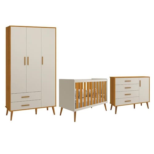 O Dormitório Infantil Isis é composto por um Guarda-Roupa, uma Cômoda e um Berço. O Guarda Roupa Isis 3 Portas e 2 Gavetas e a Cômoda Infantil Isis 1 Porta e 4 Gavetas ambos oferecem um amplo espaço para organizar os pertences do seu bebê, seus puxadores são em madeira e suas gavetas possuem um amplo espaço interno para guardar as roupinhas do bebê dobradas. E o Berço Americano Isis se enquadra em todos os termos de qualidade, segurança e durabilidade do produto, pois possui certificação pelo INMETRO. A elegância do estilo retrô aliada ao conforto.