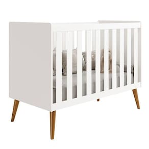 Berço Americano Isis - Reller Móveis - Estrutura 100% MDF - Pintura UV atóxica - Acabamento fosco - Certificado pelo INMETRO 009882/2022 - Padrão americano - Cantos arredondados - Transforma-se em mini cama - Estrado em MDF - 3 Regulagens de altura do estrado - Acompanha suporte para mosquiteiro - Pés estilo retrô em madeira - Colchão recomendado 70x130 cm