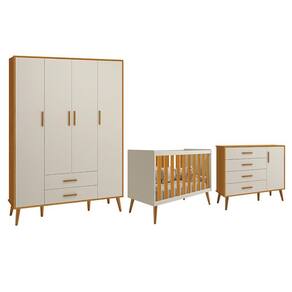 Dormitório Infantil Isis Guarda Roupa 4 Portas, Cômoda 1 Porta e Berço - Reller Móveis O Dormitório Infantil Isis é composto por um Guarda-Roupa, uma Cômoda e um Berço. O Guarda Roupa Isis 4 Portas e 2 Gavetas e a Cômoda Infantil Isis 1 Porta e 4 Gavetas ambos oferecem um amplo espaço para organizar os pertences do seu bebê, seus puxadores são em madeira e suas gavetas possuem um amplo espaço interno para guardar as roupinhas do bebê dobradas. E o Berço Americano Isis se enquadra em todos os termos de qualidade, segurança e durabilidade do produto, pois possui certificação pelo INMETRO. A elegância do estilo retrô aliada ao conforto.