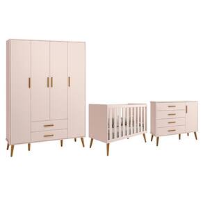 Dormitório Infantil Isis Guarda Roupa 4 Portas, Cômoda 1 Porta e Berço Rosa - Reller Móveis