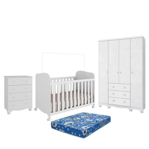 Dormitório Infantil Júnior 4 Portas, Cômoda e Berço Uli com Colchão Baby Physical - Móveis Peroba