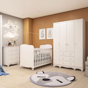 O Dormitório Infantil Júnior com Guarda-Roupa 4 Portas, Cômoda e Berço Uli da Móveis Peroba é a escolha ideal para quem busca funcionalidade, segurança e charme no quarto do bebê. O guarda-roupa conta com 4 portas, 3 gavetas com corrediças telescópicas, cabideiro metálico e prateleiras, garantindo excelente organização e amplo espaço interno. A cômoda possui 4 gavetas espaçosas e também oferece duas opções de rodapés, permitindo adaptar o visual ao seu estilo. Já o berço Uli segue o padrão americano, possui estrutura em MDF com pintura UV atóxica, 3 regulagens de altura do estrado, rodízios com trava e é certificado pelo INMETRO, oferecendo conforto e segurança para os primeiros anos do bebê. E para completar o Colchão Baby Physical da Ortobom vai proporcionar noites mais tranquilas a aconchegantes. Um conjunto completo e funcional para compor o quarto com praticidade e bom gosto.
