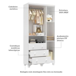 Guarda Roupa Infantil Júnior 3 Portas e 3 Gavetas - Móveis Peroba