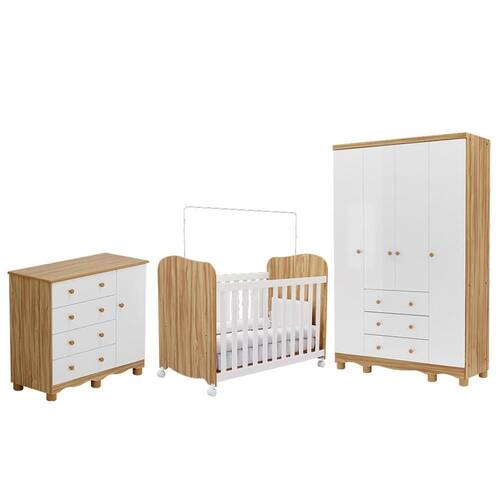 Dormitório Infantil Júnior Guarda Roupa 4 Portas, Cômoda 1 Porta e Berço Uli - Móveis Peroba
