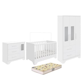 O Dormitório Infantil Popy Retrô Plus é a escolha ideal para quem busca um ambiente completo, funcional e cheio de charme para o quarto do bebê. O guarda-roupa conta com 3 portas, 2 gavetas com corrediças telescópicas, cabideiro metálico e prateleiras internas, oferecendo amplo espaço para organização. A cômoda com 1 porta e 3 gavetas também possui corrediças telescópicas, prateleira interna e acabamento retrô com puxadores em MDF revestido. O berço Popy Retrô 3 em 1 acompanha o crescimento da criança, podendo ser utilizado como mini cama ou mini sofá. Fabricado em MDF com pintura UV atóxica e certificado pelo INMETRO, possui grades fixas, cantos arredondados e rodapés no estilo retrô. E para completar o Colchão Supreme da Gazin vai proporcionar noites mais tranquilas a aconchegantes. Um conjunto completo que une segurança, estilo e praticidade.