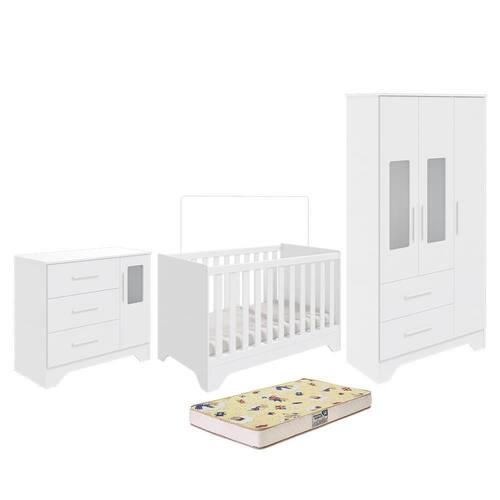 Dormitório Infantil Popy Retrô Plus Janelas Guarda Roupa, Cômoda e Berço com Colchão Supreme - Móveis Peroba