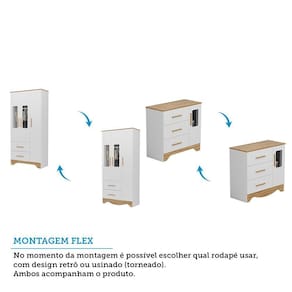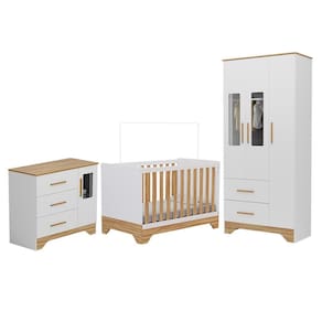 O Dormitório Infantil Popy Retrô Plus é a escolha ideal para quem busca um ambiente completo, funcional e cheio de charme para o quarto do bebê. O guarda-roupa conta com 3 portas, 2 gavetas com corrediças telescópicas, cabideiro metálico e prateleiras internas, oferecendo amplo espaço para organização. A cômoda com 1 porta e 3 gavetas também possui corrediças telescópicas, prateleira interna e acabamento retrô com puxadores em MDF revestido. O berço Popy Retrô 3 em 1 acompanha o crescimento da criança, podendo ser utilizado como mini cama ou mini sofá. Fabricado em MDF com pintura UV atóxica e certificado pelo INMETRO, possui grades fixas, cantos arredondados e rodapés no estilo retrô. Um conjunto completo que une segurança, estilo e praticidade.