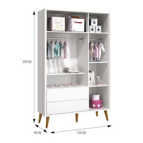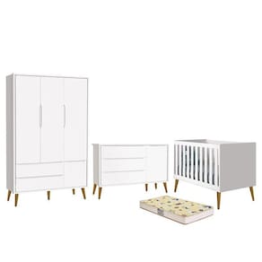 Dimensões: Tamanho do Guarda-Roupa (L x A x P): 133 x 205 x 46 cm Tamanho da Cômoda (L x A x P): 133 x 91 x 46 cm Tamanho do Berço (L x A x P): 135 x 95 x 76 cm Tamanho do Colchão (L x A x P): 130 x 10 x 70cm