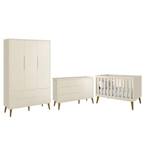 Dormitório Infantil Theo Retrô 3 Portas, Cômoda 1 Porta e Berço com Pés Amadeirado - Reller Móveis O Dormitório Theo Retrô é uma inspiração de épocas clássicas, uma releitura do estilo antigo nos tempos atuais, rejuvenescendo o ambiente com cores e formas. Seus pés pontiagudos realçam ainda mais essa proposta. Ele é composto por um Guarda-Roupa e uma Cômoda Theo Retrô de amplo espaço interno, perfeitos para a organização total do quartinho do bebê. Suas gavetas possuem corrediças telescópicas e seus puxadores são embutidos, agregando beleza e modernidade ao ambiente. E pelo Berço Theo Retrô, que além de muito estiloso, transforma-se em mini cama com proteção, auxiliando na transição do berço para caminha, desfrutando do móvel por mais tempo. Deixe o quartinho do seu filho moderno e encantador com o Dormitório Theo Retrô.