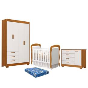 Dormitório Infantil Zaki Guarda Roupa, Cômoda e Berço Danny com Colchão Baby Physical - Reller Móveis