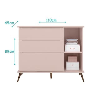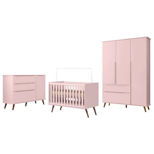 Dormitório Melinda Guarda Roupa, Cômoda com Porta e Berço Retrô Rosê Acetinado - Phoenix Baby