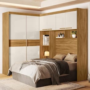 Transforme seu quarto em um espaço funcional e organizado com o Dormitório Modulado Casal Florença. Estrutura em MDP (15/12 mm) com acabamento em pintura UV. Composto por guarda-roupa de canto com portas de correr (trilho de alumínio, detalhe chanfrado e antiempenamento metálico) e ponte com portas e dobradiças metálicas, prateleiras internas, cabideiro interno (alumínio) e gavetas com corrediças telescópicas. Compatível com colchão de 138 cm de largura (tamanho casal) e com dupla opção de montagem: pode ser instalado no lado esquerdo ou direito conforme a preferência. Este produto será entregue em 05 volumes.
