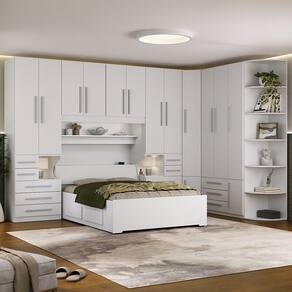 * Colchão e itens de decoração não estão inclusos. Imagens meramente ilustrativas. Dormitório de casal Queen Size com cama embutida, versão mais completa. A cama de casal queen size com baú além de muito resistente e confortável também agrega mais espaço com suas 4 gavetas, duas de cada lado. O dormitório é na verdade um conjunto de módulos. Você pode mudar a composição trocando ou adicionando módulos conforme seu gosto e seu espaço. – 02 Guarda-roupas de 2 portas e 5 gavetas com mesa de cabeceira embutida modelo 1224; – 01 Maleiro queen size 4 portas modelo 1226; – 01 Armário de Canto Sextavado modelo 1231; – 01 Guarda-roupa de 4 portas e 3 gavetas modelo 1249; – 01 Cantoneira com 6 prateleiras curvas modelo 1322; – 01 Cama Queen Size Convencional para colchão 158x198 cm com Baú e 4 gavetas modelo 1251; – Puxadores 256mm. DIMENSÕES DO PRODUTO MONTADO - ALTURA 240 CM; - LARGURA 390 CM; - PROFUNDIDADE 51CM NOS ARMÁRIOS E 230CM NA CAMA Vão livre de 166cm de comprimento por 110cm de altura abaixo do maleiro. Para compras de dormitórios sem a cama inclusa lembre-se sempre de verificar se a cabeceira da sua cama cabe neste espaço. Atenção: Não nos responsabilizamos, no ato da entrega, por desmontagens, subir escadas/elevadores ou transporte por guincho para apartamentos. Eventuais despesas são de responsabilidade do cliente. Confira as dimensões deste produto e certifique-se de que o mesmo passará normalmente por supostos elevadores, portas, escadas e/ou corredores de sua moradia.