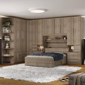 Dormitório Queen Size Completo 1222 Castanho * Colchão e itens de decoração não estão inclusos. Imagens meramente ilustrativas. Dormitório de casal Queen Size com cama embutida, versão mais completa. A cama de casal queen size com baú além de muito resistente e confortável também agrega mais espaço com suas 4 gavetas, duas de cada lado. O dormitório é na verdade um conjunto de módulos. Você pode mudar a composição trocando ou adicionando módulos conforme seu gosto e seu espaço. 02 Guarda-roupas de 2 portas e 5 gavetas com mesa de cabeceira embutida modelo 1224; 01 Maleiro queen size 4 portas modelo 1226; 01 Armário de Canto Sextavado modelo 1231; 01 Guarda-roupa de 4 portas e 3 gavetas modelo 1249; 01 Cantoneira com 6 prateleiras curvas modelo 1322; 01 Cama Queen Size Convencional para colchão 158x198 cm com Baú e 4 gavetas modelo 1251; Puxadores 256mm. DIMENSÕES DO PRODUTO MONTADO - ALTURA 240 CM; - LARGURA 390 CM; - PROFUNDIDADE 51CM NOS ARMÁRIOS E 230CM NA CAMA Vão livre de 166cm de comprimento por 110cm de altura abaixo do maleiro. Para compras de dormitórios sem a cama inclusa lembre-se sempre de verificar se a cabeceira da sua cama cabe neste espaço. Atenção: Não nos responsabilizamos, no ato da entrega, por desmontagens, subir escadas/elevadores ou transporte por guincho para apartamentos. Eventuais despesas são de responsabilidade do cliente. Confira as dimensões deste produto e certifique-se de que o mesmo passará normalmente por supostos elevadores, portas, escadas e/ou corredores de sua moradia.