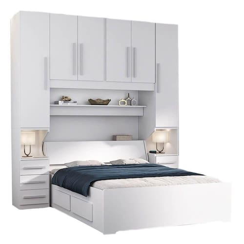 Dormitório Queen Size Sem Cama 1220s Branco * Cama, Colchão e itens de decoração não estão inclusos. Imagens meramente ilustrativas. Ideal para casais que procuram de um dormitório com bom espaço interno e compacto para os ambientes das grandes metrópoles. - 01 Guarda-roupas de 1 porta e 3 gavetas com mesa de cabeceira embutida modelo 1416 esquerdo; - 01 Guarda-roupas de 1 porta e 3 gavetas com mesa de cabeceira embutida modelo 1416 direito; - 01 Maleiro queen size 4 portas modelo 1226; - Corrediças, dobradiças a cabideiros de metal; - Chapa de 15mm de espessura; - Puxadores 256mm; DIMENSÕES DO PRODUTO MONTADO - ALTURA 240 CM; - LARGURA 241,4 CM; - PROFUNDIDADE 51CM NOS ARMÁRIOS (LEMBRE-SE DE CONSIDERAR O ESPAÇO NECESSÁRIO PARA SUA CAMA). Vão livre de 166cm de comprimento por 110cm de altura abaixo do maleiro. Lembre-se sempre de verificar se a cabeceira da sua cama cabe neste espaço. Embora a cama não acompanhe, informamos que o painel, o frontal e prateleira localizados abaixo do maleiro são inclusos (pois fazem parte do maleiro e não da cama). Atenção: Não nos responsabilizamos, no ato da entrega, por desmontagens, subir escadas/elevadores ou transporte por guincho para apartamentos. Eventuais despesas são de responsabilidade do cliente. Confira as dimensões deste produto e certifique-se de que o mesmo passará normalmente por supostos elevadores, portas, escadas e/ou corredores de sua moradia.
