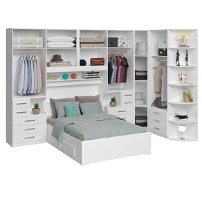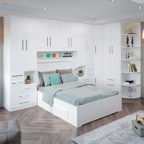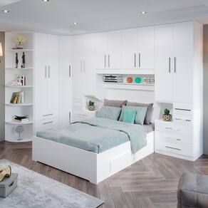 * Colchão e itens de decoração não estão inclusos. Imagens meramente ilustrativas. Dormitório de casal sem cama, versão mais completa. O dormitório é na verdade um conjunto de módulos. Você pode mudar a composição trocando ou adicionando módulos conforme seu gosto e seu espaço. – 02 Guarda-roupas de 2 portas e 5 gavetas com mesa de cabeceira embutida modelo 1224; – 01 Maleiro de casal Queen Size 4 portas modelo 1226; – 01 Armário de Canto Sextavado modelo 1231; – 01 Guarda-roupa de 2 portas e 3 gavetas modelo 1228; – 01 Cantoneira com 6 prateleiras curvas modelo 1322; – Puxadores 256mm. DIMENSÕES DO PRODUTO MONTADO - ALTURA 240 CM; - LARGURA 390 CM x 187 CM - PROFUNDIDADE 51CM NOS ARMÁRIOS (CONSIDERAR O COMPRIMENTO DA SUA CAMA) Vão livre de 146cm de comprimento por 110cm de altura abaixo do maleiro. Para compras de dormitórios sem a cama inclusa lembre-se sempre de verificar se a cabeceira da sua cama cabe neste espaço. Atenção: Não nos responsabilizamos, no ato da entrega, por desmontagens, subir escadas/elevadores ou transporte por guincho para apartamentos. Eventuais despesas são de responsabilidade do cliente. Confira as dimensões deste produto e certifique-se de que o mesmo passará normalmente por supostos elevadores, portas, escadas e/ou corredores de sua moradia.