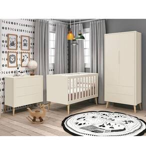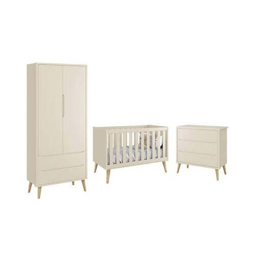 Dormitório Theo 2 Portas com Pés Madeira Natural - Reller Móveis O Dormitório Theo conta com um design moderno, trazendo elegância e sofisticação para o quartinho do bebê. Ele é composto por um Guarda-Roupa e uma cômoda, ambos com amplo espaço interno. E um Berço que acompanha o desenvolvimento do seu filho se transformando em uma linda mini cama.