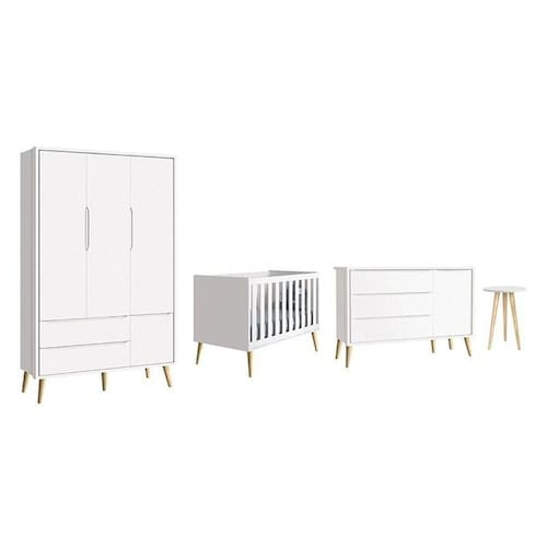 Dormitório Theo 3 Portas E Mesa De Canto Branco Com Pés Madeira Natural - Reller Móveis Branco