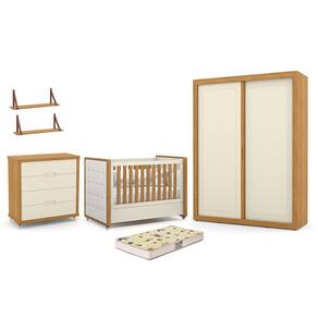 Dormitório Tutto 2 Portas, Cômoda, Berço com Capitonê, Colchão Supreme e Prateleiras - Matic Móveis