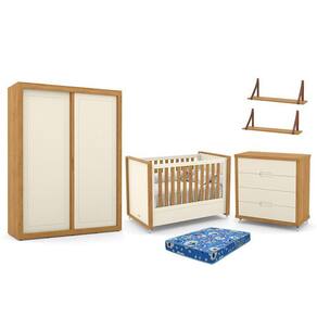 Dormitório Tutto New 2 Portas, Cômoda, Berço com Colchão e Prateleiras - Matic Móveis