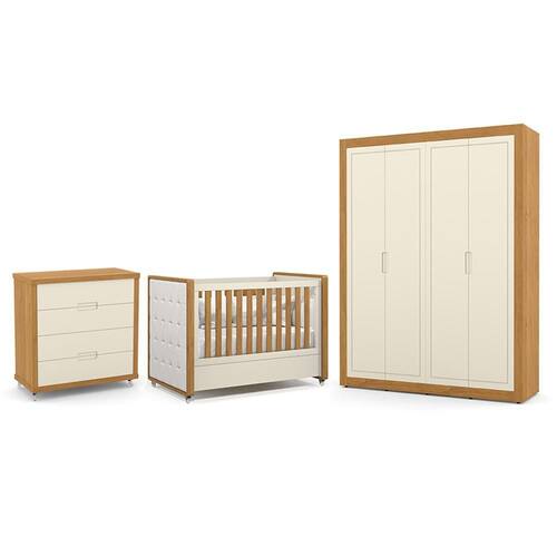 Dormitório Tutto New 4 Portas, Cômoda 4 Gavetas e Berço com Capitonê - Matic Móveis