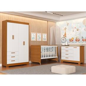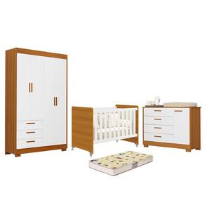 Dormitório Zaki Guarda Roupa, Cômoda e Berço Evolution com Colchão Supreme - Reller Móveis