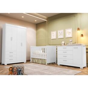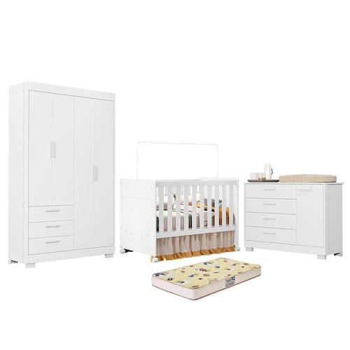 Dormitório Zaki Guarda Roupa, Cômoda e Berço Katatau com Colchão Supreme - Reller Móveis - Branco